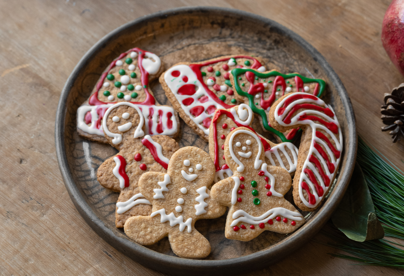 Las clásicas galletas de jengibre de formas navideñas, decoradas a mano.